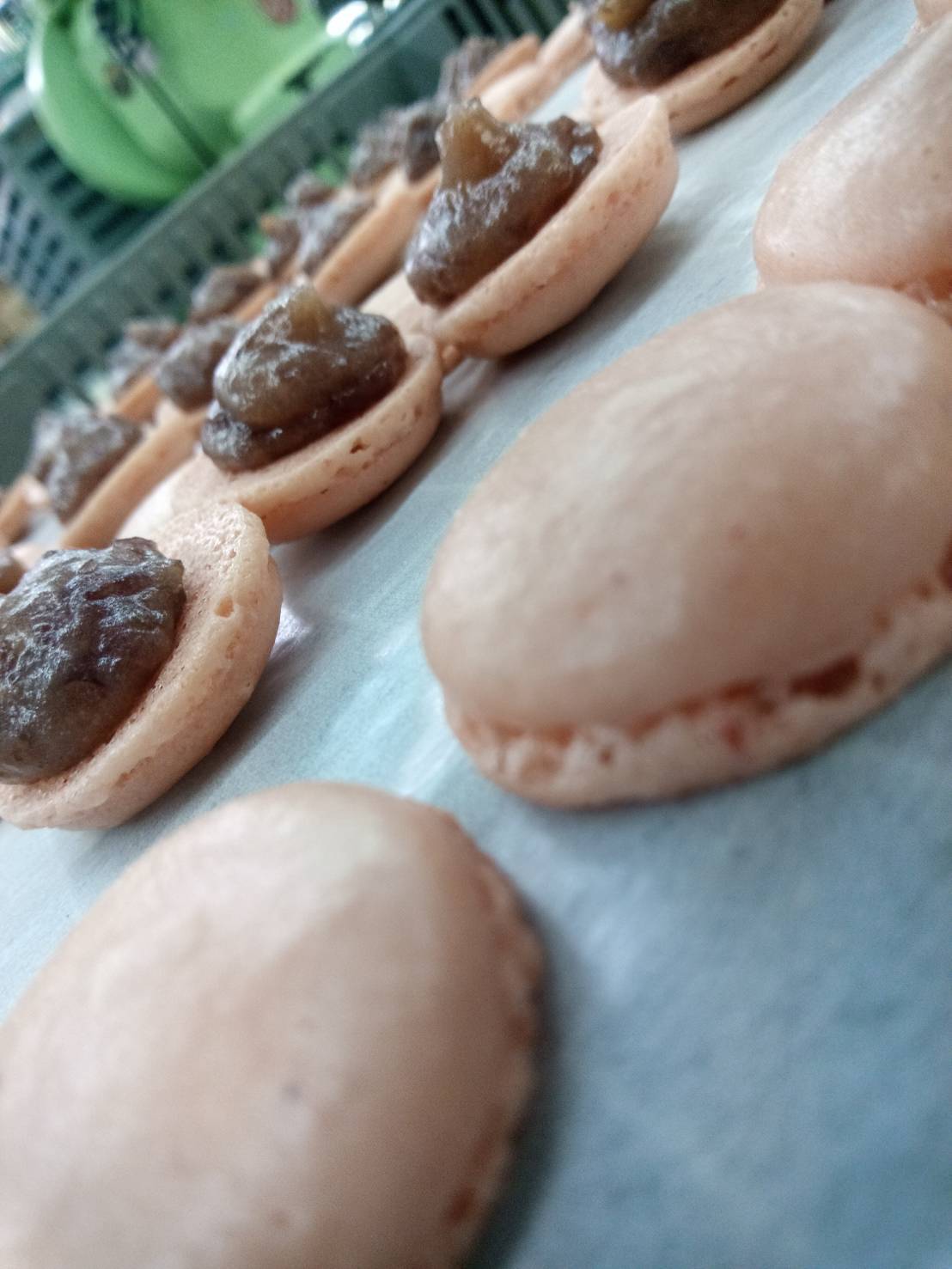 丹波産の大納言あずきをまんなかに忍ばせて桜漬けの花びらが舞う春の京まかろんです。